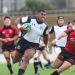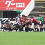 前半22分には、朝日大学が相手陣10m付近でモールを形成し、押し込んでコラプシングの反則を得る。相手陣22m付近でスクラムを選択。スクラムを押し込みながら、左サイドに⑧サムエラ・ワカヴァカが走り込み右中間トライ、20-0とする。