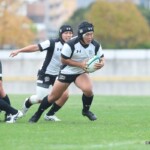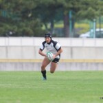 前半37分にも、朝日大学は相手陣22mラックから左に⑬渡部から⑫谷川、ループしてもう一度⑬渡部に繋ぎ、最後に左サイドを走る⑪前田が一人かわし左隅にトライ(ゴール成功)、27-0とする。
