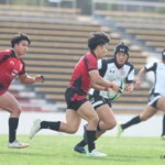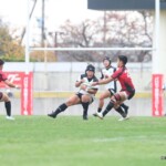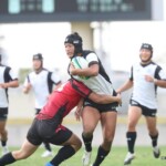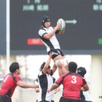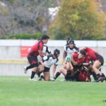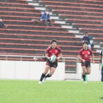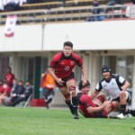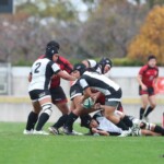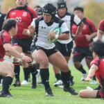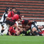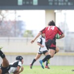 後半25分にも、朝日大学が相手陣10m付近のスクラムから反則を得て、相手陣深くでモールを形成、押し込みながら右サイドに走り込んだ⑩江藤がゴール中央に連続トライ(ゴール成功)、53-0と大きくリードを拡げる。