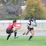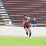 後半38分、ついに八戸学院大学が中央付近のスクラムから、FW、BKが一体となり連続攻撃。最後に⑮長谷川が㉓坂井にロングパス。