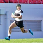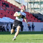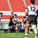 これ以上引き離されたくない龍谷大だが、大体大は40分にも、敵陣10Mラインアウトから左へ展開、⑧シオネが一発ぶちかまし、⑬戸羽がラインブレーク、フォローしていたSH⑨三浦裕次郎がゴール前まで好走、最後はまた⑧シオネが大きな体で飛び込み(GK成功)、大体大が点差を広げて前半を終える。(29-3)