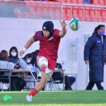 7分、今度は龍谷大、敵陣22M中央付近での相手オフサイドのペナルティに対し、迷わずショットを選択、SO⑩伊藤瑠生がペナルティーゴールをきっちり決める。(5-3)