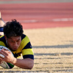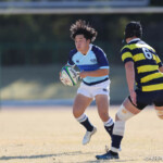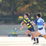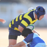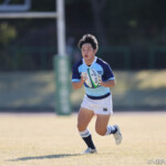 さらに24分にG前10mの摂南のオフサイドによるPKから優位に立つスクラムを選択、持ち出した№8⑧宮下大輝がそのまま右中間に抑え、早くも逆転に成功した。