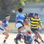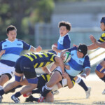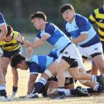 立命館の前に出るディフェンス、FW・BKS一体となった攻めから一方的なペースとなった。摂南はスクラムや接点で反則を繰り返し、逆襲の機会を掴めなかった。