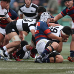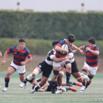 関学は12分にも相手陣左10mL付近のラインアウトから6番FL稲垣直希が中央をブレイク、フォローした11番WTB加藤匠郎が2人をかわし中央にトライし追加点を上げた。(15番G成功、14−0)