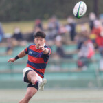 後半は、関学10番SO斉藤総馬のキックでリスタートした。大体大は関学の2つの反則からペースをつかみかけたが、ラインアウトでミスをして関学にボールを渡してしまう。中央HLのスクラムから9番SH橋詰が相手陣内深くまで入り込みオフサイドの反則からPGを選択、15番奥谷が中央22mLのPGを冷静に決めて、後半最初の得点を上げた。(10分、22−5)