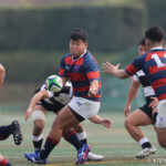 その後も関学ペースのまま終始大体大陣内でゲームは進められ、33分、22番佐藤然のラインブレイクから19番野矢健太郎が右隅にトライ(15番G不成功、41−5)し、試合の大勢を決めた。