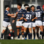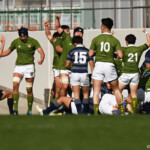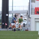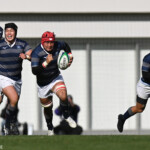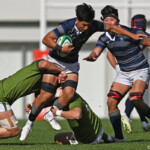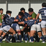 しかし1トライ1Gで同点となる。ロスタイムに入り最後のチャンスが訪れた大東大は41分、G前右ラインアウトからモールを形成、中央に移動させたいところだったが、キャプテンHO②酒木凜成が押さえたのは右隅を余儀なくさせられた。同志社のモール対応が成功した場面だった。CTB⑫戸野部のコンバージョンは惜しくも外れ、ノーサイドの笛が鳴らされた。