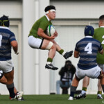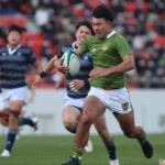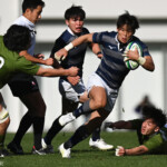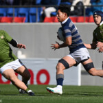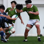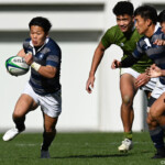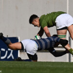 これ以上離されたくない大東大は26分、初めてのチャンスをつかむ。G前7m左ラインアウトからのモールを起点にSH⑨稲葉聖馬からLO④塩見成梧につなぎ左中間にトライし反撃を開始した。32分にもCTB⑫戸野部謙がラインブレイクし左中間に押さえた。