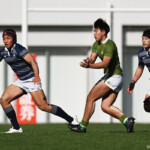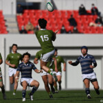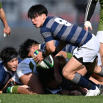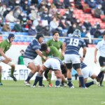 大東大は前半20分間、反則やミスでボールを確保できず防戦に回った。同志社ペース。迎えた8分、同志社は大東大オフサイドの反則でのPKからG前5m右ラインアウトとし、モールを押し込みHO②西濱悠太が右隅に押さえた。