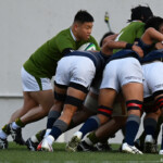 FWは不用意なパスでサポートが遅れていたのでボールキープを意識した。敵陣で当て過ぎて下げ過ぎたので、いったん落ち着いてリスタートの形を持っているので、その形からトライをつなげようと指示した。