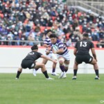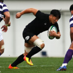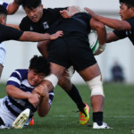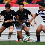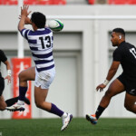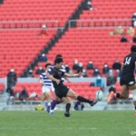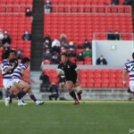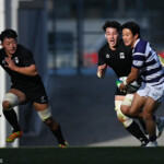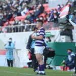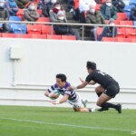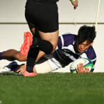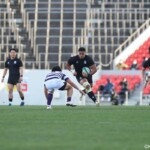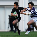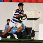 明治も12分、CTB⑫廣瀬雄也がG前23m左からPG狙うが決まらない。しかし明治は直後の13分、G前22m中央スクラムからキャプテンSH⑨飯沼蓮が右サイドを抜け出し右中間にトライ、5-3とリードを奪った。