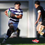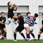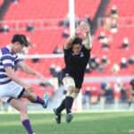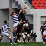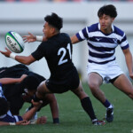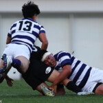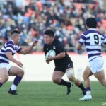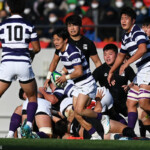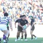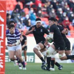 26分、明治は22m中央ラックから右へ展開し、CTB⑫廣瀬がWTB⑪松本純也へのキックパスを決めWTB⑪松本がトライ、Gも成って12-3と点差を広げる。さらに41分、明治はG前5m中央ラックからCTB⑬江藤良が左中間トライ、17-3で前半を終えた。後半は天理のスクラム対策に注目したい。