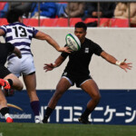 勢いに乗る天理は続く21分、HL中央のラックから走力のあるWTB⑪ナイバルワガ トマシが抜け出し、50mを走りきってトライを上げた。G成功して24-17。