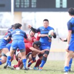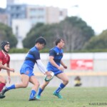 前半31分、中盤の攻撃から⑪谷が巧みにラインブレイク、そのまま走り切り中央にトライ、コンバージョンも成功し21-5と突き放し前半が終了した。