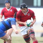 前半17分、鹿児島大学のキック処理のミスに乗じてターンオーバー、右に展開すると⑩吉原に渡り右隅にトライ、コンバージョンも成功し14-5とリードを広げる。