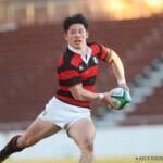 松山大学は、直後のリスタートのキックオフでキャッチした東北学院大学に圧力をかけてペナルティーを奪う。タッチに蹴り出し、右ゴール前のラインアウトからサインプレーで②川端が右端にトライ。5点を返して5-14とする。