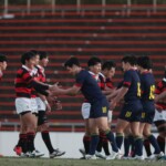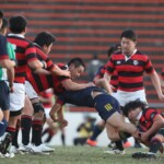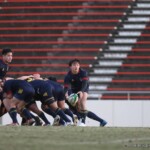 後半は、東北学院大学のキックオフでスタート。お互いにキックでエリアを奪い合う中で、東北学院大学がリズムを掴みアタックを続けるが、自分たちのミスや松山大学の粘り強いディフェンスに阻まれる。