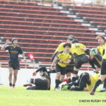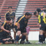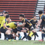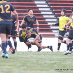 対するタマリバクラブも、中盤からペナルティーを得るとゴール前に地域を進める。ハーキュリーズは、巧みなスクラムの駆け引きで優位に立ち地域を押し戻す。その後は、タマリバクラブがラインアウトモールを軸に攻撃を重ねるが、ハーキュリーズが力強い防御で相手陣に地域を進める。