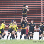 後半5分、タマリバクラブは、中盤のラインアウトから細かな攻撃を繋ぎ前進する。アドバンテージを得ながらボールを動かすと、⑮荻野が左中間にトライ、コンバージョンも成功し10−10、ゲームを振り出しに戻す。