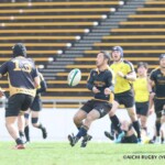 その後は双方積極的に攻撃を仕掛けるなか、タマリバクラブがチャンスを得る。前半終了間際に相手陣中央でペナルティーを得るとショットを選択、⑩竹山が冷静に沈めて3−10とし、前半が終了した。