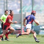 直後の前半1分、中部電力のキックオフ再開のボールがノット10mとなり、兵庫県はフリーキックから攻め、ハーフウェイライン付近パスを回し、⑩藤﨑がディフェンスの間のスペース突き抜け出し、ゴール中央へボールを運びトライ、自らコンバージョンも決め、7-7と同点とする。