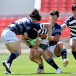 この後、同大は4分に④小島雅登が、5分に⑭廣岡雅楽長がトライし(7-19)で前半を終える。