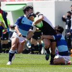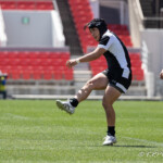 5分摂南大13番三田村祐城が中央にトライGKも9番大津が成功し14-15と追い上げる。6分に再び摂南大が10番前薗斗真がトライGKも9番大津が成功し21-15と逆転。
