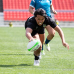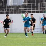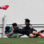 後半7分:ハーフウェイライン付近からパスを受けた近畿大学⑪植田選手がスピードで一気に相手を抜き去り、そのまま左サイドにトライ。同点に追いつく。(天26-26近)