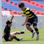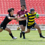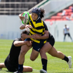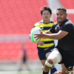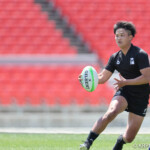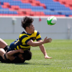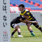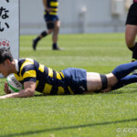 5分にも、速攻から㉒高岡壮太がトライし点差を縮める(26-12)も、この後天理大が、6分㉓妹尾薫トライと7分⑨藤原健之朗トライと突き放しゲームセット(40-12)。