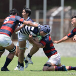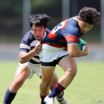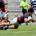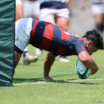 意地を見せたい関大は19分にゴール前7mからのペナルティからWTB⑪澤口飛翔がタップキックで攻め最後はPR①宮内慶大がゴールポスト下にねじ込みトライ、GKもFB⑮立石が成功し、38-17と追い上げる。