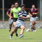 14分には関大が敵陣22m付近からSO⑩池澤佑尽のキックパスを受けたWTB⑭神戸逸玖が右中間にトライ、GK不成功7-10と再逆転。