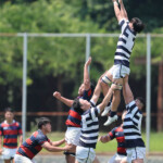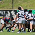 開始6分にチャンスを掴んだ関大は敵陣ゴール前15m左ラインアウトからモールを形成し最後はSH⑨湫 叶太からパスを受けたCTB⑬藤原悠が左中間に先制トライ、GK不成功0-5。