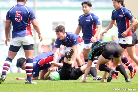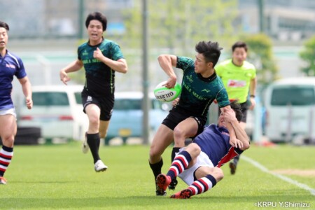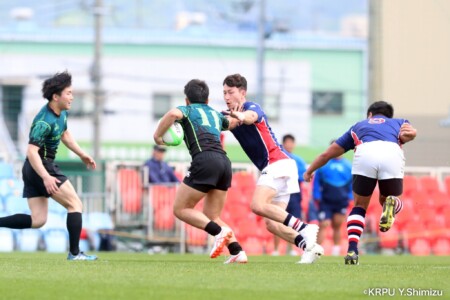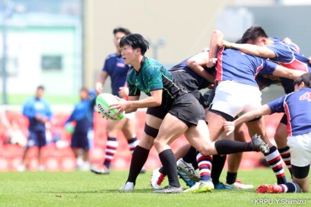 前半2分:試合開始の奈良の攻撃をかわし、兵庫【7】クーパー選手が抜け出してそのまま中央へトライ。先制点は兵庫(奈良0-5兵庫)