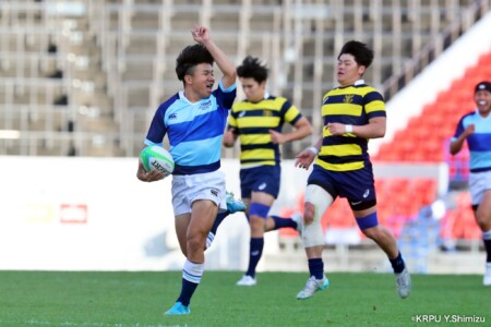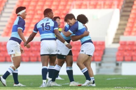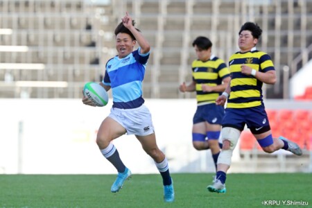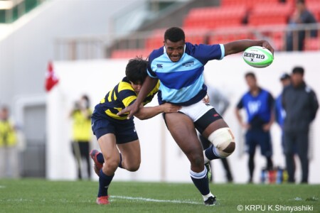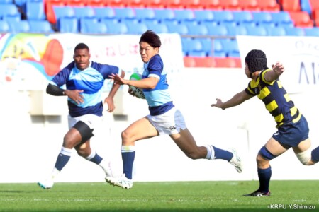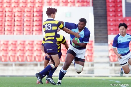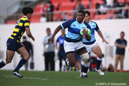 3分、再び摂南大が3番ヴェティ・トゥポウの個人技で左中間にトライ、GK不成功14-24