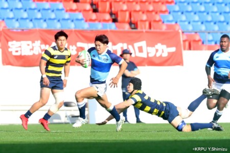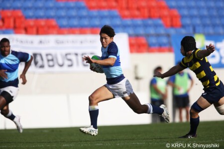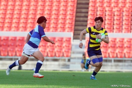 自分が最初のキックオフでミスしてしまい、セブンズはキックオフがカギを握っているのでその部分で負けていた。接点の部分では留学生相手にビビらずに勝負できていた、そこは評価できると思っています。