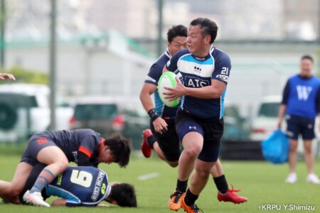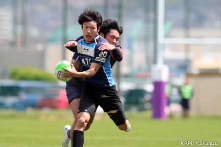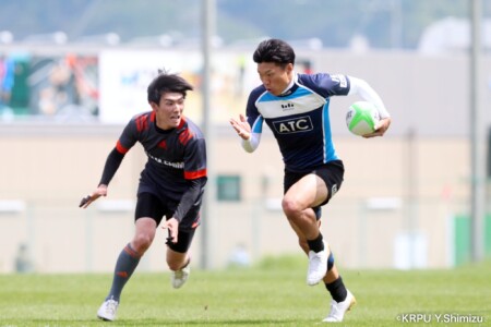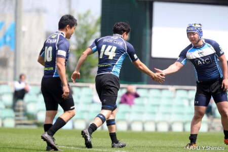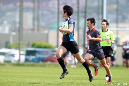 後半も愛知教員が開始早々1分に15番塚本のトライと、前半から変わったキッカーの10番山下 岳のゴールで主導権を握る、その後も愛知教員の攻撃は続き5分には12番川上の自陣からの80ⅿ独走のトライなのでTEME EHIMEに反撃のすきを与えなかった。(文責:北畑幸二)