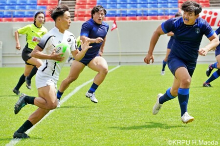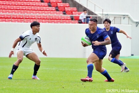 3分に⑱トゥポウが、7分に⑨藤原竜之丞がトライと大きく点差を開け終了。39-5(文責:髙橋茂治)
