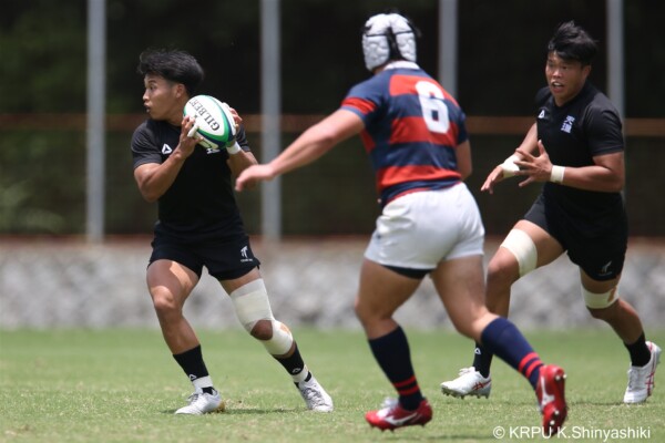 10分には関学大のキックからカウンターを仕掛け、8番パトリック・ヴァカタから2番説拓海が右中間にトライ、10番筒口允之のゴールも決まり12点差とする。