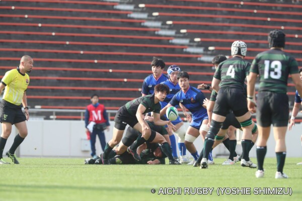 両チーム相手陣5mまで攻め込む猛攻を見せるも、トライに繋がらず序盤は均衡。