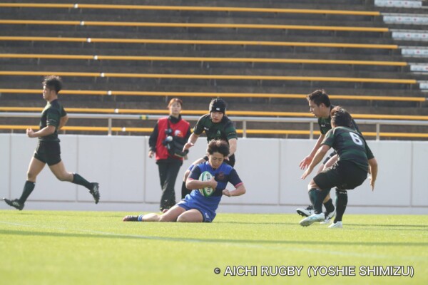 後半18分、北海道大は、相手陣侵入し、3番山本耕平の突破をきっかけに、11番伊藤完が相手を引きずりながらトライ、キッカー15番恩田春太郎コンバージョン成功、7−22