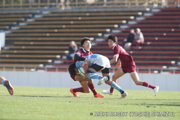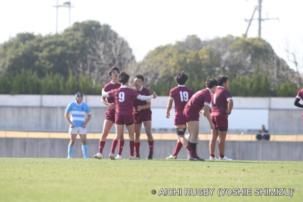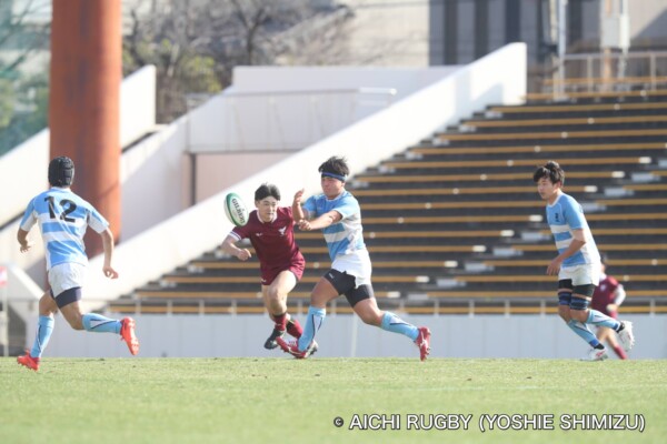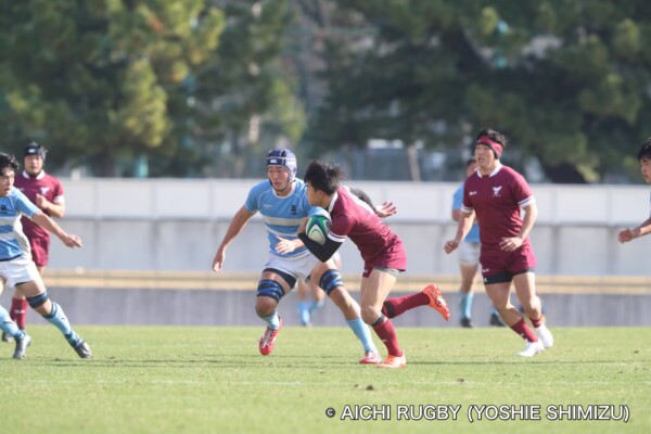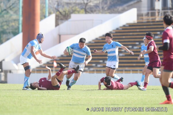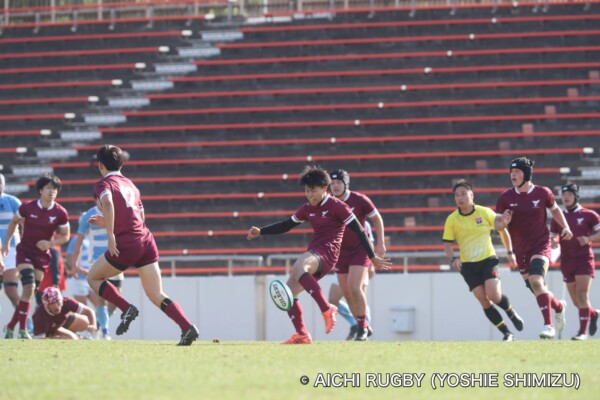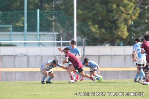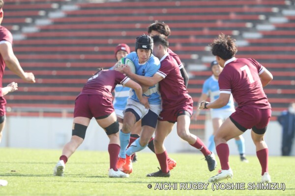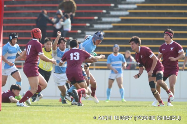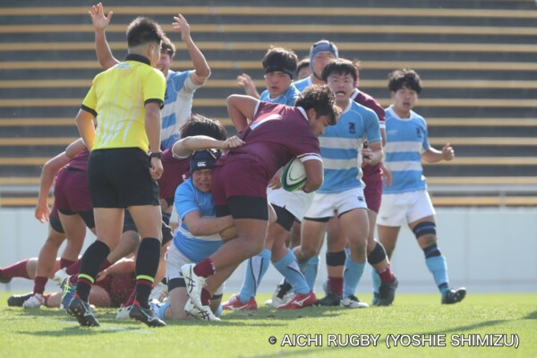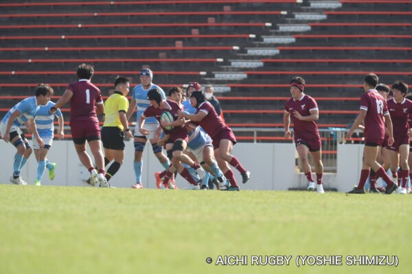 この直後、茨城大は、キックオフ再開から、相手ノックオンのボールをマイボールとすると、FWのラックサイドのアタックを重ねゴール前へ、ゴール前5mで得た相手ペナルティでは、タップキックから攻め込むもトライに至らない。