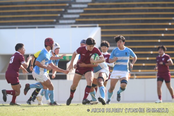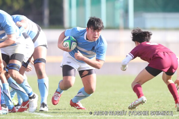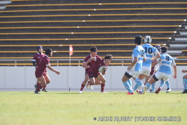 さらに、前半31分には、相手陣22m内側右の相手ボールのスクラムを押し込みマイボールとするとゴール前へ、左右へと展開し、③吉成悠斗が相手ディフェンス受けながら突破し、右中間にトライ。