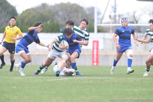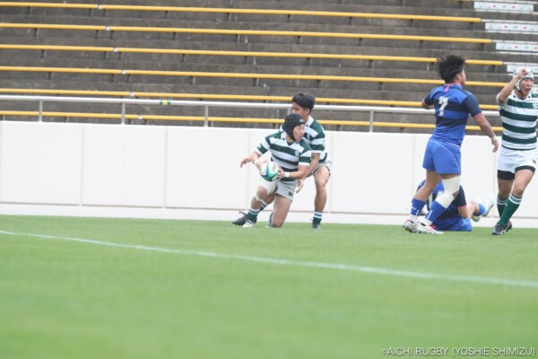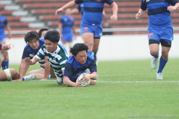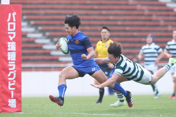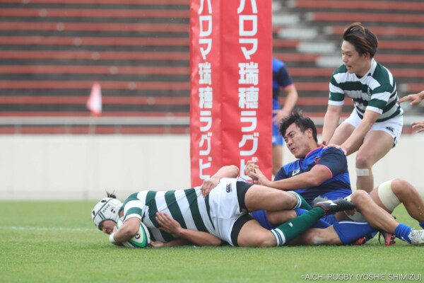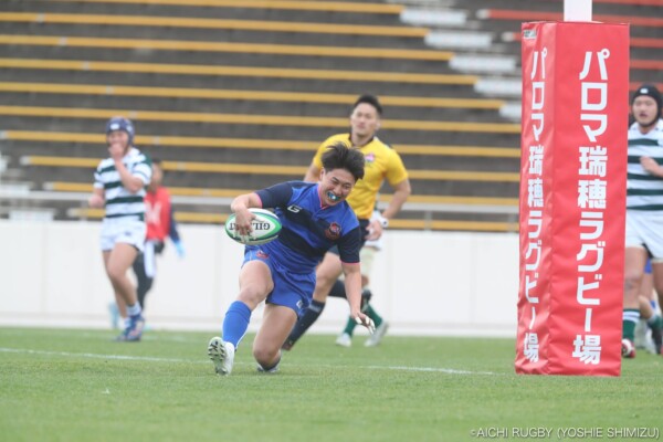 後半18分、スクラムからアドバンテージを得ながら攻撃、⑫岡田健吾がクリーンブレイク、そのまま中央にトライ、コンバージョンも⑩永川大雅が決めて22-21、再びリードを奪う。