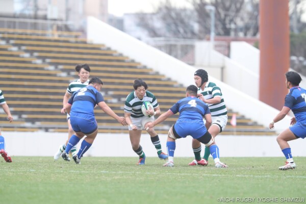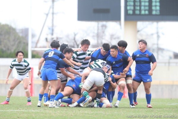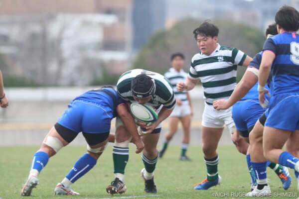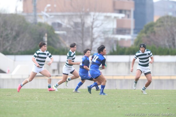 勢いをつけたい西南学院大学であるが、追手門学院大学は厳しい防御で圧力をかけミスを誘う。スクラムでは追手門学院大学が優位に立ち、ペナルティーを得る。ラインアウトでも前進する追手門学院大学に対し、西南学院大学は我慢の防御、相手のミスを誘い地域を押し返す。その後、追手門学院大学は中盤を支配し得点の機会を窺う。