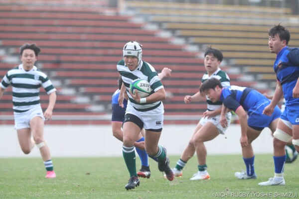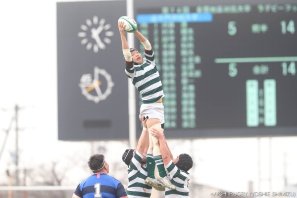 前半38分、ペナルティーを得るとラインアウトに切り替えモールで前進、最後は⑫岡田健吾が抜け出し左中間にトライ、10-14と追撃する。