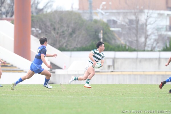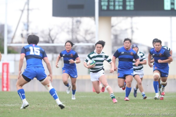 対する西南学院大学は直後の前半6分、中盤ラインアウトの攻撃から⑬小谷佑がブレイク、⑮東渉太郎、⑭梅嵜正永と渡り右隅にトライ、コンバージョンも⑩川上隆輔が決めて7-5と逆転する。