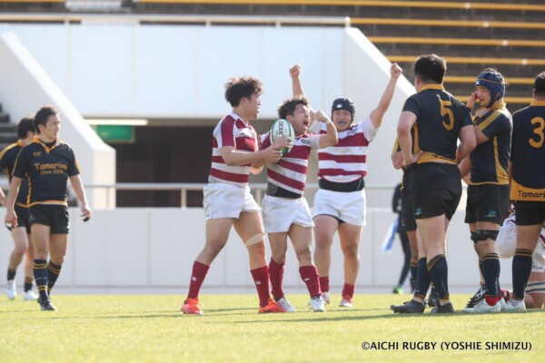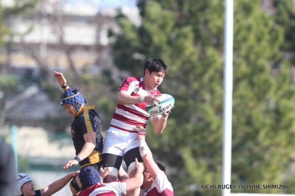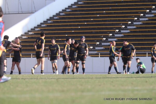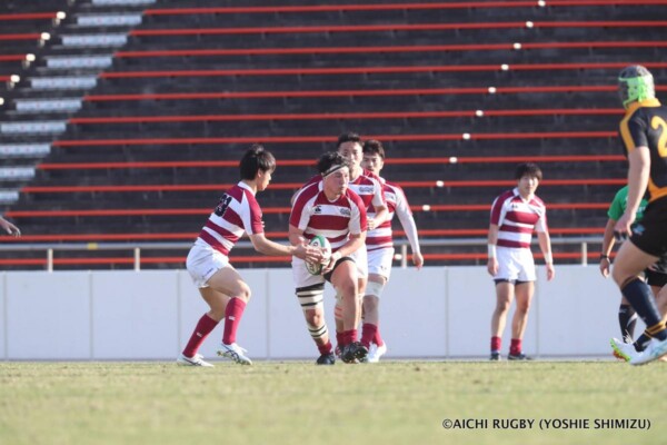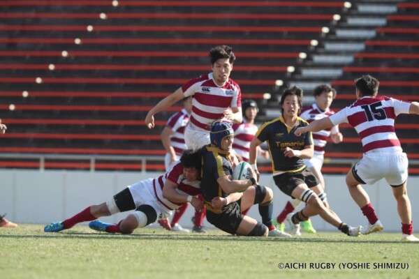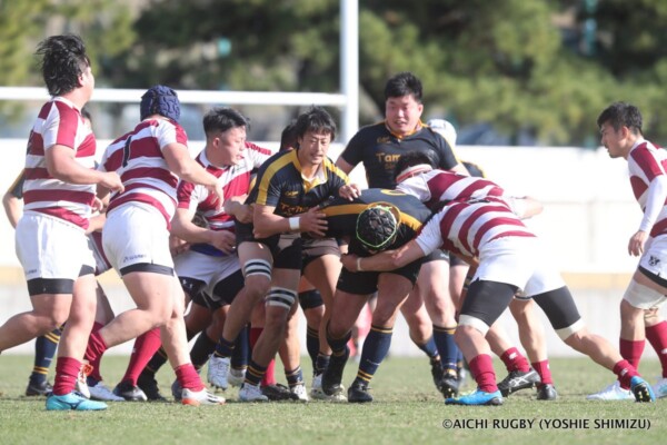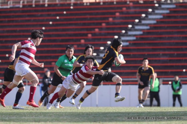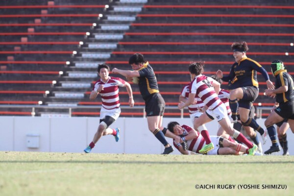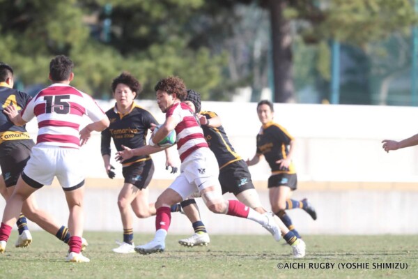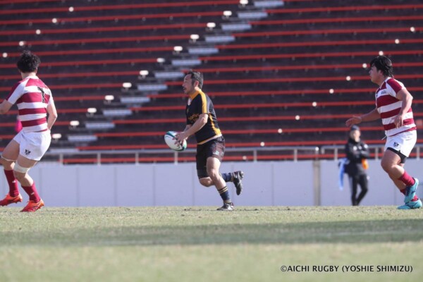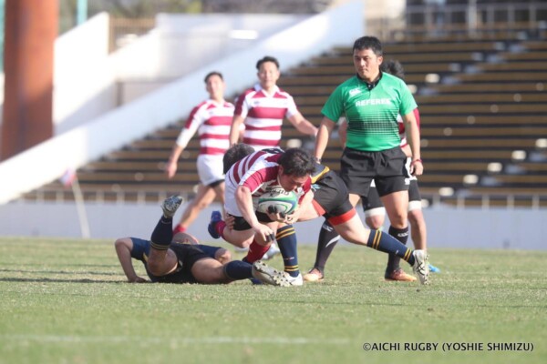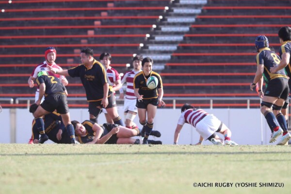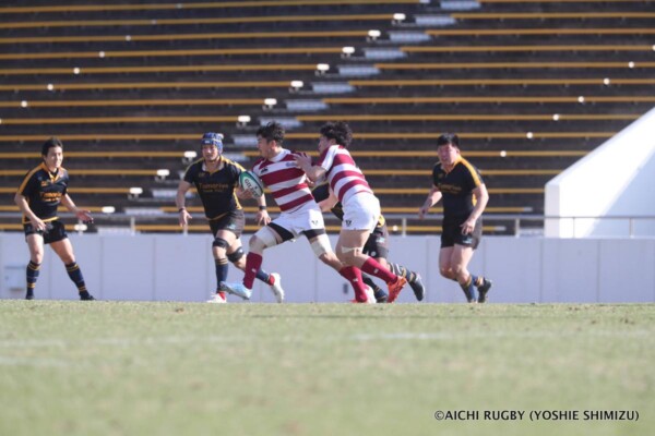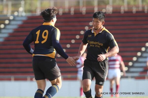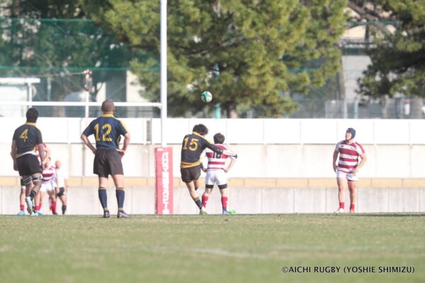さらに、後半19分、相手ゴールラインドロップアウトから、相手陣10m付近でマイボールとしアタック、相手ホールディングの反則を得ると、ペナルティゴールを選択、相手陣10m内側中央やや左から、⑮畑が決め、6-7と、1点差に詰め寄る。
