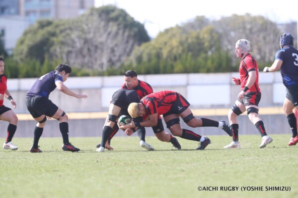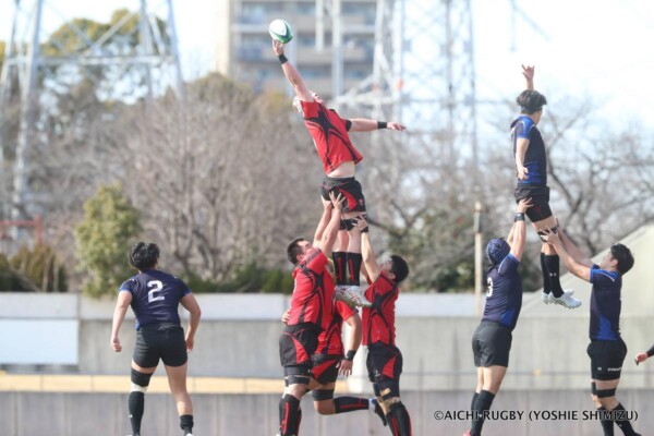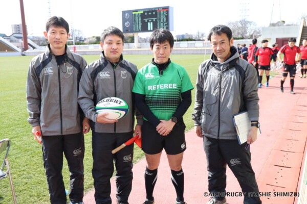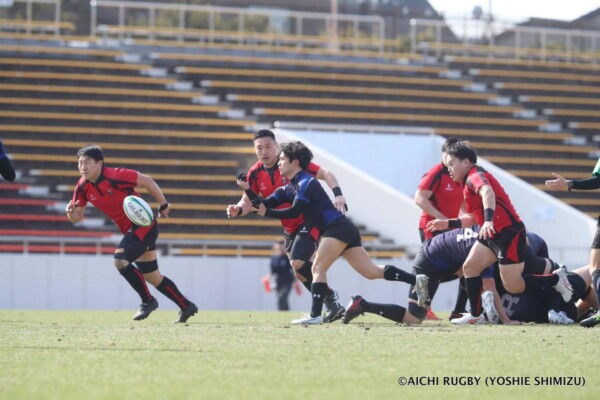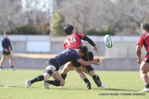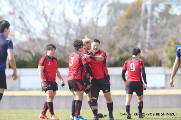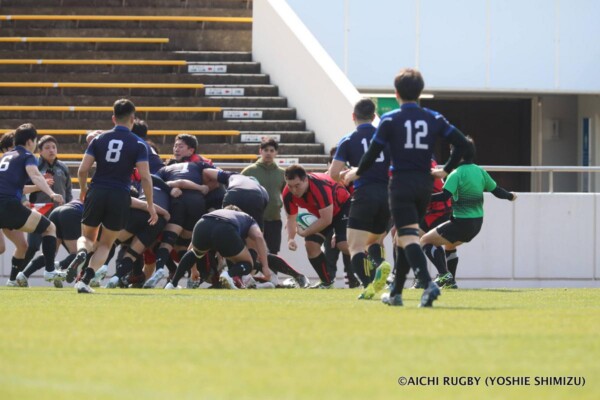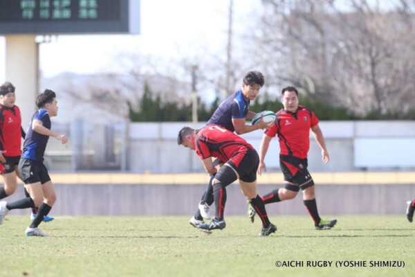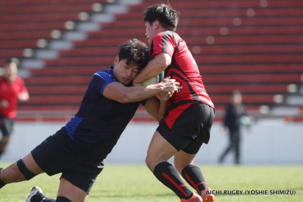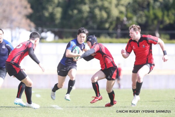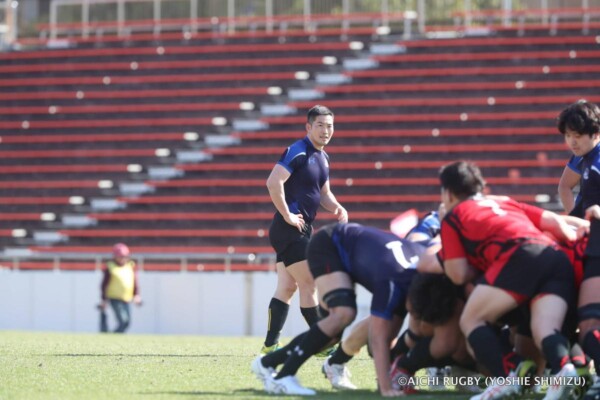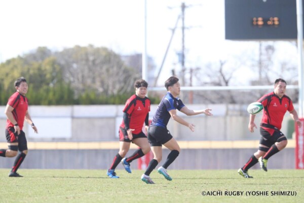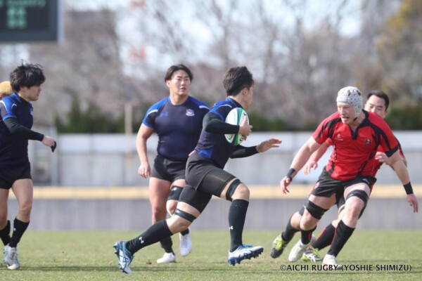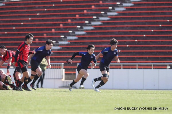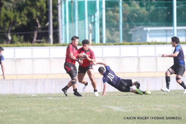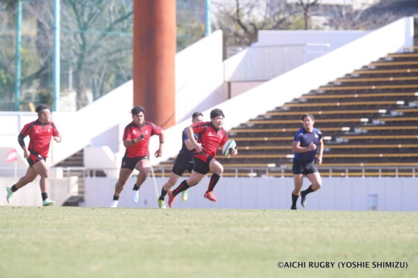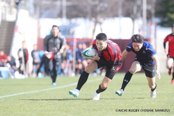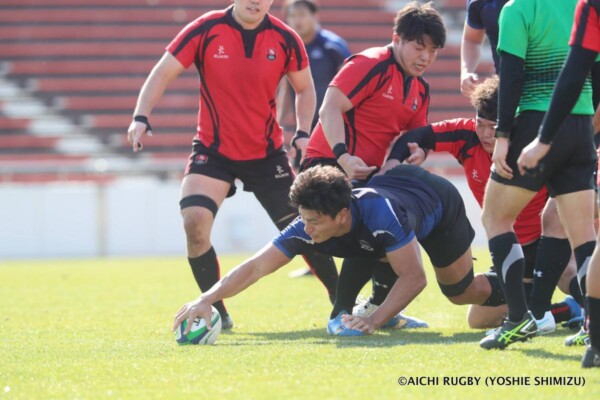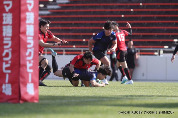 前半7分、ハーフウェイライン付近からフェーズを重ねゴール前へ、左サイドでのアタックから⑫堀越が、右中間⑮佐々木へキックパスが渡ると、相手ディフェンスを受けながらトライ、⑫堀越のコンバージョン成功により、7-0とする。