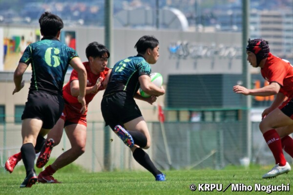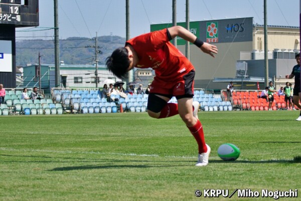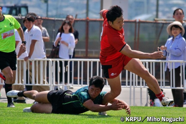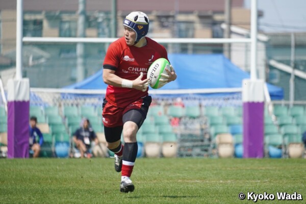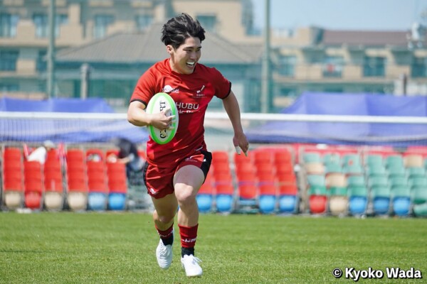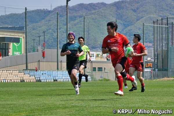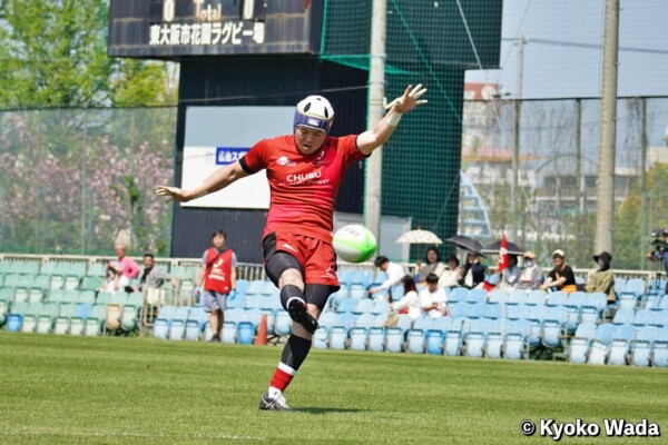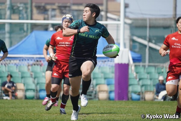 後半1分に奈良県選抜12番小松原 圭輔がインターセプトして中央にトライ、ゴールも決めて21-12と追い上げるが、中部電力は3分に8番石田がトライ、13番津田 貫汰がゴールを決め28-12、続いて4分に20番谷川 司、直後の5分に23番野々山 紘旨がトライし40-12と差を広げる。